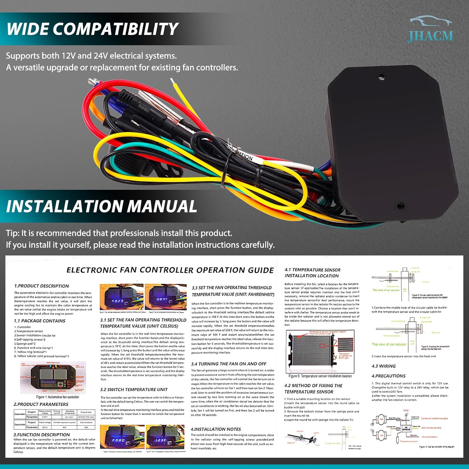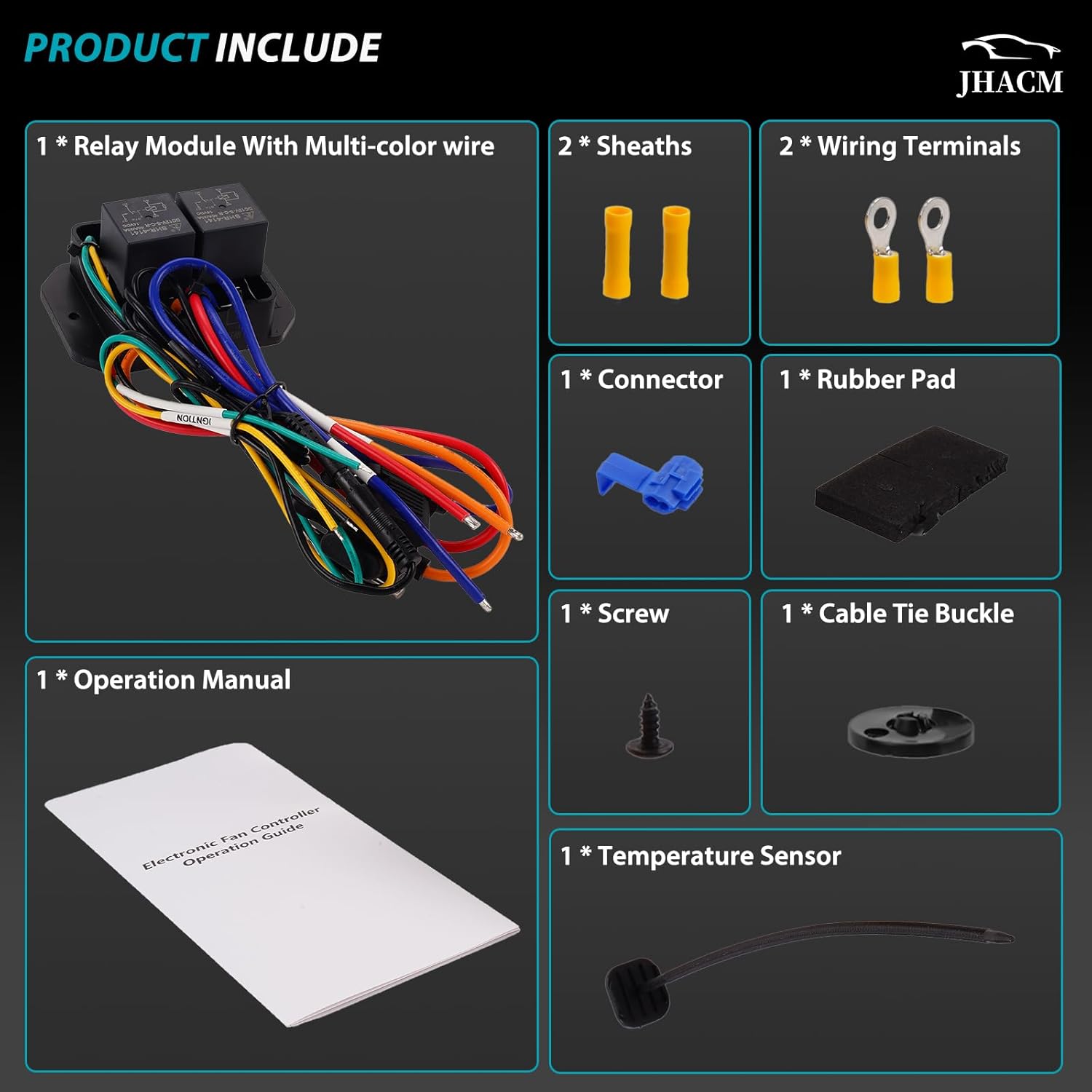Experience precise cooling control with our Digital Electric Radiator Fan Controller Switch Kit, designed to optimize your vehicle's engine temperature efficiently and reliably. This advanced controller allows you to seamlessly manage your radiator fan's operation, ensuring optimal performance and preventing overheating in all driving conditions.Crafted with high-precision digital circuitry, the kit features an adjustable temperature sensor with a 40°C to 120°C range, enabling you to set the exact fan activation point for your vehicle’s needs. The controller supports a continuous 30A current load, suitable for most electric radiator fans, providing robust and stable power delivery.Whether you’re navigating city traffic or tackling steep mountain roads, this controller adapts dynamically to maintain ideal engine temperatures, enhancing your car’s longevity and performance. Its compact design and durable materials ensure easy installation and long-term reliability, resisting heat and vibration commonly encountered under the hood.Installation is straightforward with included step-by-step instructions and all necessary mounting hardware. Simply connect the temperature sensor near the radiator, link the controller to your fan, and adjust your desired temperature setting via the intuitive digital interface.Constructed with high-quality components and tested rigorously, this kit guarantees durability and consistent performance. In addition, we provide a 2-year warranty and responsive customer support to ensure your complete satisfaction.Package Includes: 1 x Digital Electric Radiator Fan Controller, 1 x Temperature Sensor, 1 x Wiring Harness, 1 x Mounting Bracket, 1 x User Manual.Optimize your vehicle’s cooling system with this reliable, easy-to-use Digital Electric Radiator Fan Controller Switch Kit — the perfect upgrade for enhanced engine protection and performance.