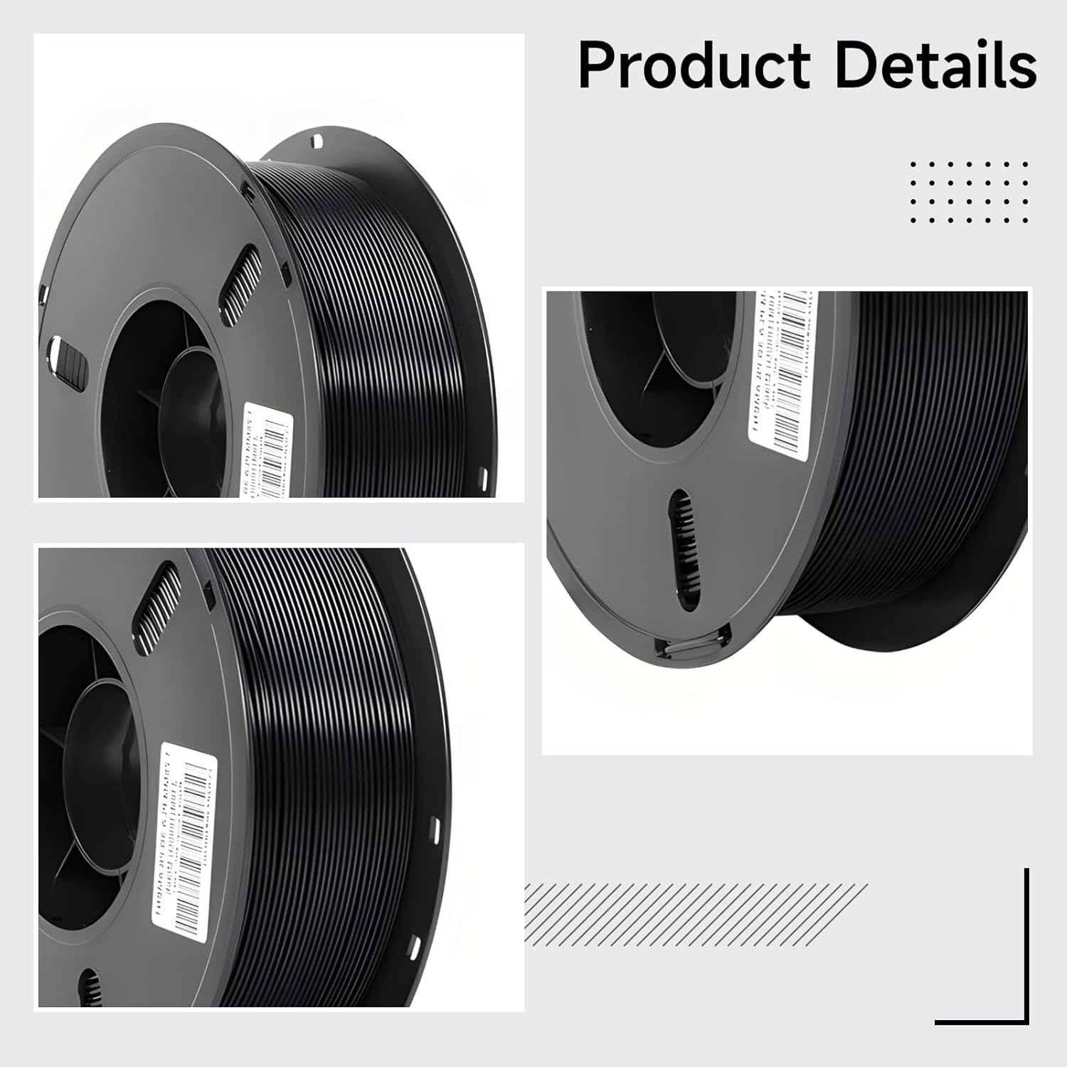 Color: Black Material: Plastic Size: Spool: 7.8 x 2.4 in / 198 x 60 mm,Inner Diameter: 2.1 in / 53 mm Package Includes: 1 x 3D Printing Filament Note: - Please refer to the measurement. Tiny measuring error is allowable in normal range. - There might be a little color difference due to the monitor, camera or other factors, please refer to the physical item.