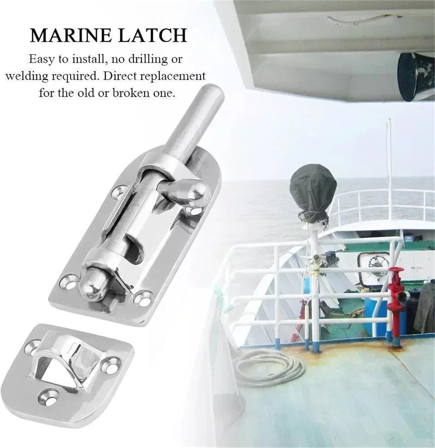 Color: SilverMaterial: 316 Stainless SteelSize: 110mmPackage content:2 x Boat Door Lock LatchNote:1. The real color of the item may be slightly different from the pictures shown on website caused by many factors such as brightness of your monitor and light brightness.2. Please allow slight manual measurement deviation for the data.