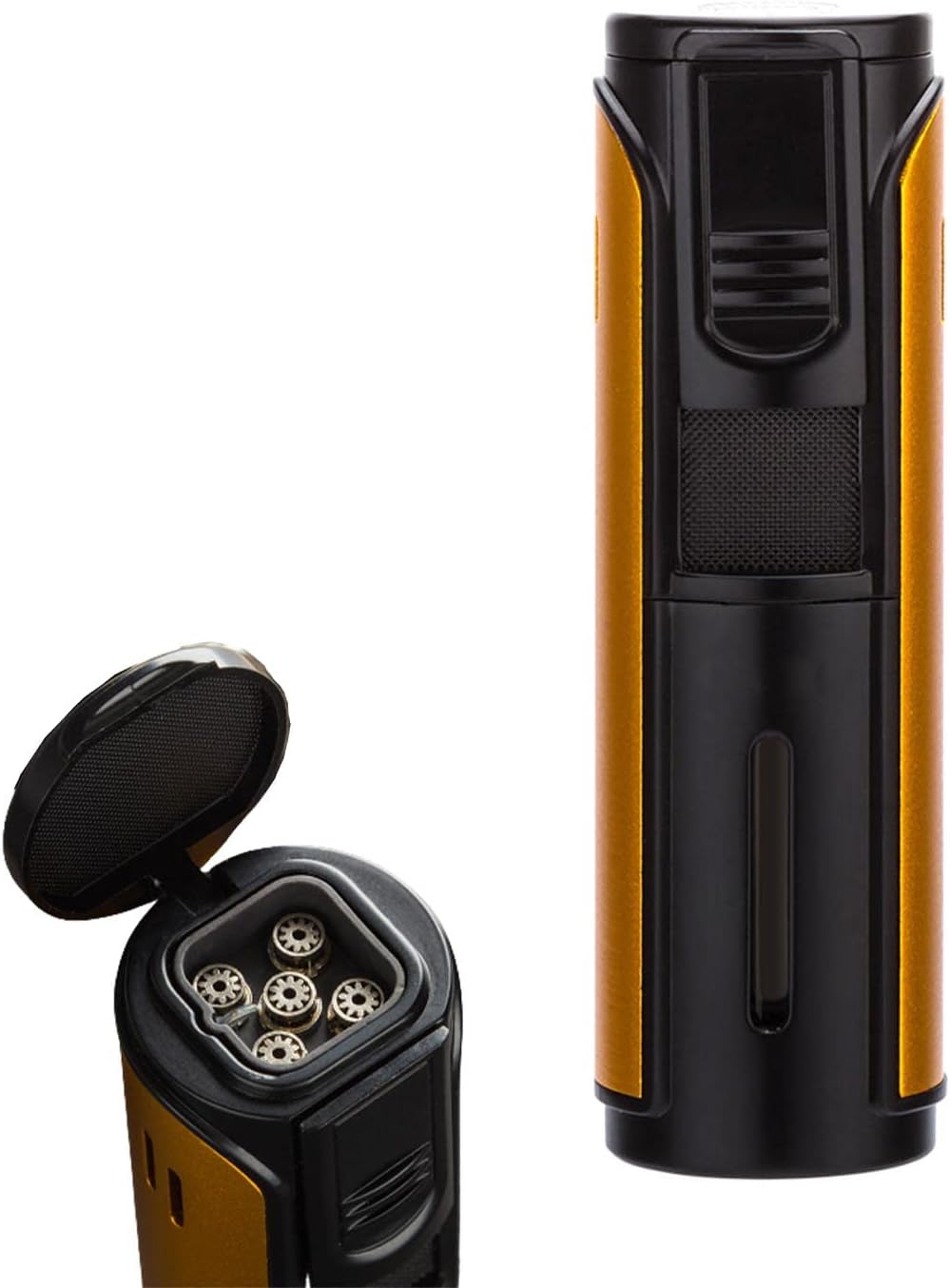 📨Description:Boutique Windproof Metal Butane Jet Flame Cigar Turbo Torches Lighter Packaging With Gift Box100% brand new and high qualityModern and nice designLighter is refillable,Windproof, Adjustable,Cigar punchAs a perfect Gifts for Cigar lovers,yourself or your friends.📨Specification:Material: Zinc alloySize : 90*30mmColor: Yellow,Black,RedPacking: Gift box📨Package includes:1*Lighter1*Packing gift box📨Note:1. Please allow manual measurement of 1-3mm difference, thank you for your understanding!2. Due to the difference between different monitors, the picture may not reflect the actual color of the project, please understand.3.Due to air mail regulation, all lighters are empty, please kindly fill in butane gas before using. Thank you!