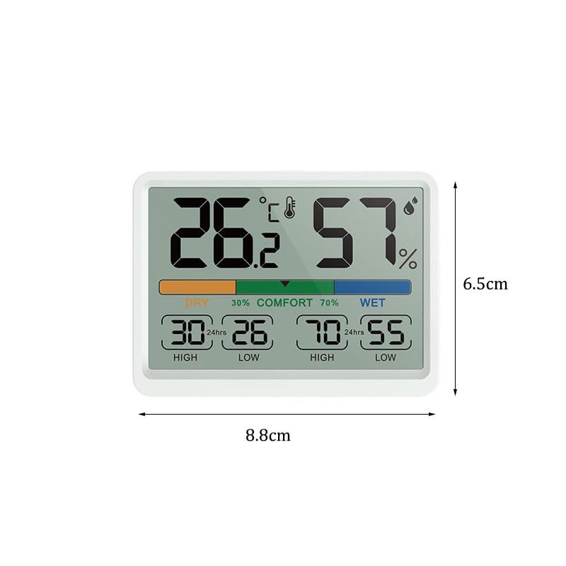 • Readability: The temperature reading can be clearly displayed. This enables you to have a clearer understanding of the temperature of the environment measured by the thermometer and maintain the optimal humidity balance for a healthy lifestyle!