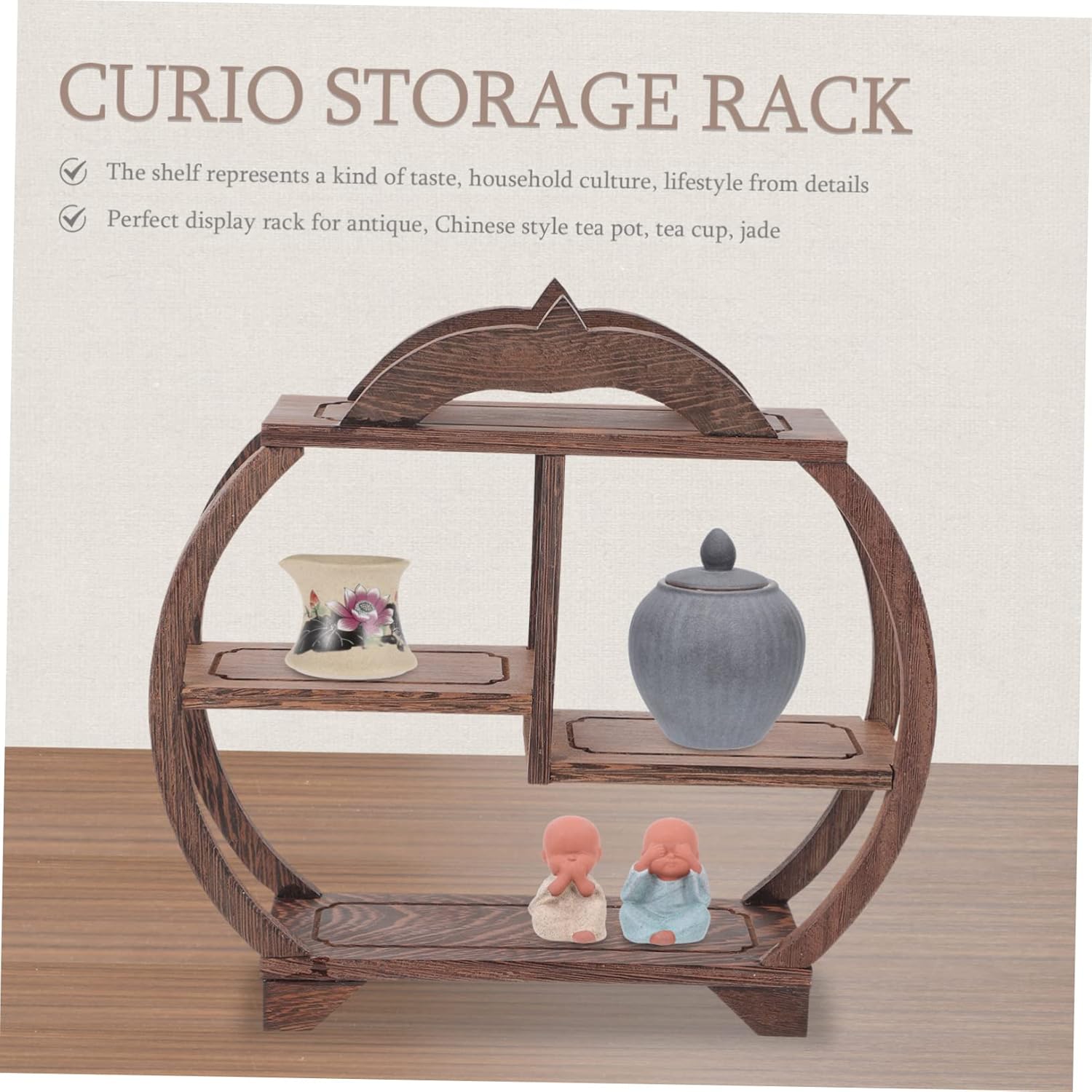 Package Include 1 x Storage Rack Features - Size: 28.00X28.00X7.00cm/11.00X11.00X2.75in antique shelf -Material:Wood vintage display stands - Color: Coffee antique display stands - Simple and generous, design, has an and beautiful outlook jade crafts rack. - The antique display frame enjoys endless aesthetics and a sense of historical beauty antique showing shelf. - display rack for antique, Chinese style tea pot, tea cup, jade curio stand. - The shelf represents a kind of taste, household culture, from details antique storage shelf. - The excellent workmanship of it will bring you a using experience curio display stands.Goods Descriptioncurio rack You can put your beloved and cherished antiques .antique showing shelf This antique displaying stand is made of for and to use.vintage display stands Its design looks vintage and chic.curio display stand It is also a decoration for living room, restaurant and tea house