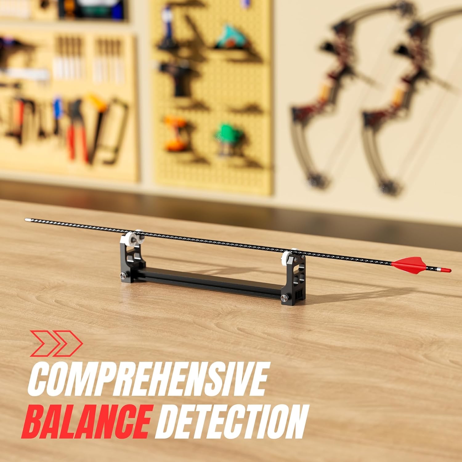 Achieve Perfect Arrow Flight and Unwavering AccuracyIn archery, consistency is everything. Ensure every arrow in your quiver is perfectly straight with our professional 12-inch Arrow Spinner. Designed for serious archers, this arrow squaring tool allows you to quickly and easily identify any flaws in your arrow shafts, broadheads, or inserts that could compromise your shot.Engineered for Flawless PerformanceThis arrow spinner tester tool is equipped with upgraded ceramic bearings that dramatically reduce friction and never get rusty, allowing your arrows to spin freely and for longer. The arrow spinner base is crafted from a single, extended piece of anodized aluminum alloy, providing a robust and perfectly stable platform that won’t wiggle or shift during use.Built for the Modern ArcherWhether you’re tuning your arrows at home, making adjustments at the pro shop, or doing a last-minute gear check at a 3D archery shoot, this arrow spinner tool is ready. Its lightweight design can be disassembled in seconds for easy transport, fitting conveniently into any bow case or gear bag. It’s the perfect companion for ensuring your equipment is in peak condition, wherever your passion for archery takes you.How to Use:Assemble the spinner on a flat, level surface.Gently place an arrow shaft onto the two sets of ceramic bearing rollers.Give the arrow a light spin with your finger.Observe the arrow’s points and fletching as it rotates. A perfectly straight arrow will spin smoothly without any visible wobble.Applications & Ideal For:Bowhunters: Verify broadhead alignment and arrow straightness before a hunt.Competitive Target Archers: Ensure maximum consistency for tighter groups.DIY Arrow Builders: Check shaft straightness before and after fletching and installing inserts.Archery Clubs & Pro Shops: A reliable, essential tool for tuning and repair services.
