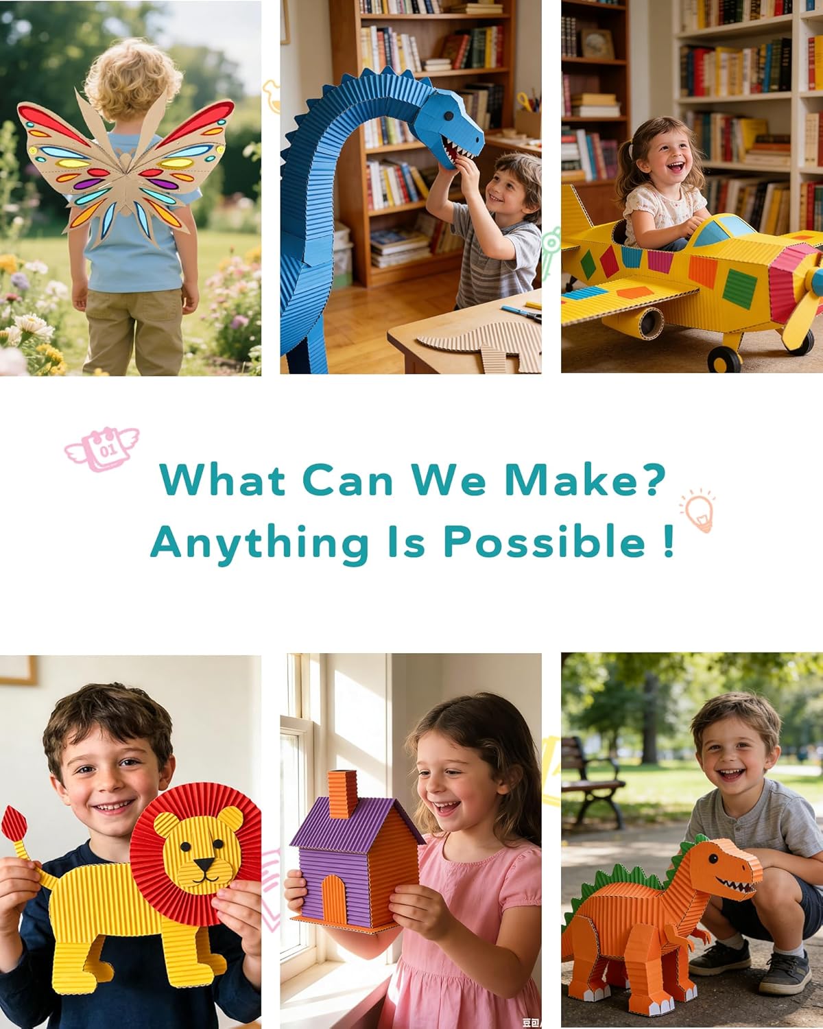 BEAVERBOT Cardboard Tools for Kids with Tool Bag, 107 PCS Cardboard Construction Kit for Family & Team Activities, Creative STEM Educational Toys Gift for Boys and Girls Aged 4+