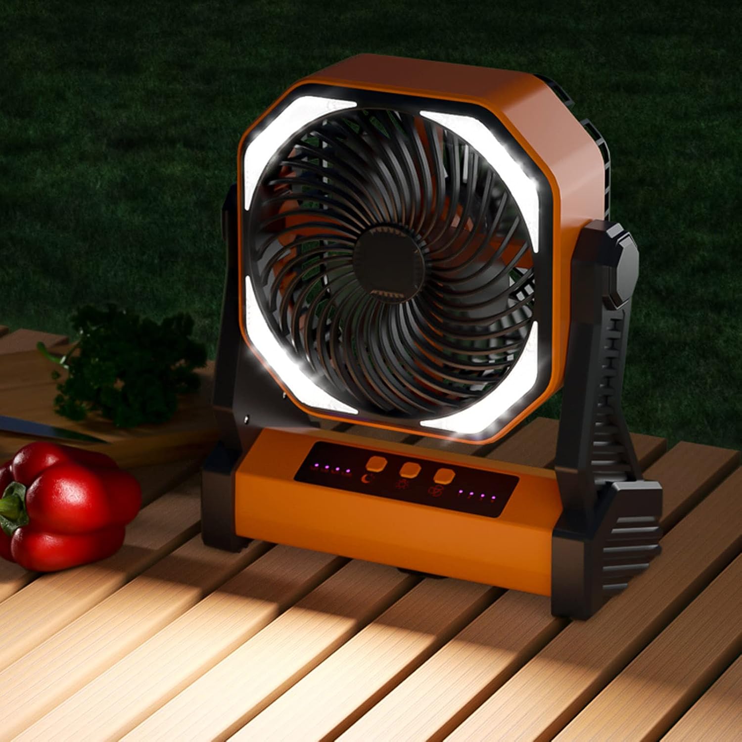 Item Type: Camping Fan with LED LanternMaterial: ABSVoltage: 5VCurrent: 3APower: 15WBattery: Polymer Lithium Battery 20000mah (included)Up and Down Angle: 270°Level: 4 LevelsWeight:Approx. 1376g / 48.5ozPackage List:1 x Camping Fan with LED Lantern1 x User Manual1 x Power Cable