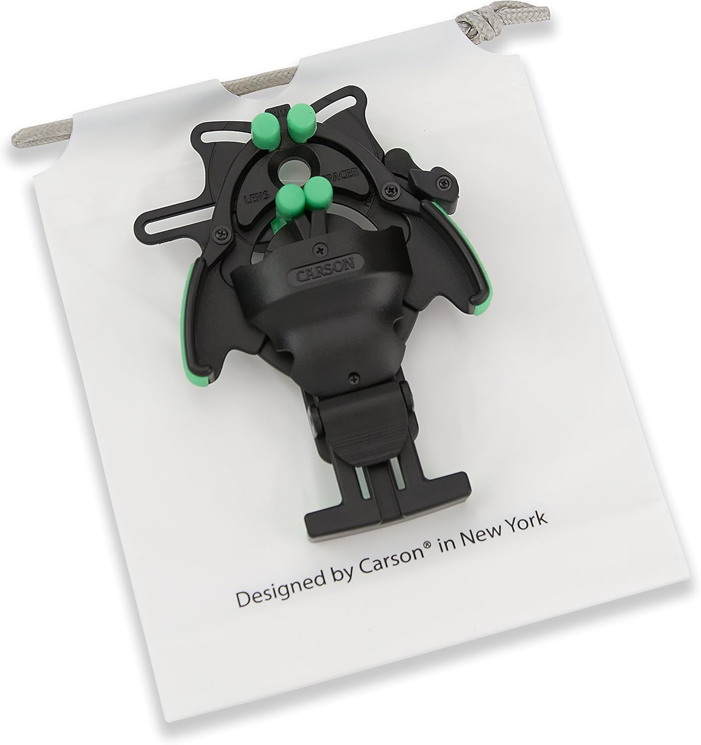 Carson now offers our SkySeeker 15x-37.5x newtonian reflector beginner telescope in a bundled package with our Universal Smartphone Optics Digiscoping Adapter allowing users to take images and videos with their smartphone through the telescope and a variety of other optics! The SkySeeker telescope has precision 76mm optics and a 15x-37.5x power magnification range for high-quality imaging. The SkySeeker Dobsonian Mount Telescope comes with 8mm and 20mm Huygenian eyepieces. The precision optics offer great images of the moon and planets, as well as views of bright deep sky objects like the Orion Nebula (M42), Hercules Cluster (M13) and Andromeda Galaxy (M31). No assembly is required. The SkySeeker telescope comes ready to use right out of the box. The Universal Smart Phone Optics Adapter allows users to connect a multitude of optics to their smartphones and then use their built in camera apps to take amazing pictures and videos. Use the universal adapter to connect your phone to binoculars, spotting scopes, telescopes, microscopes (including slit lamps), monoculars, borescopes and so much more! In regards to connecting your universal adapter to optical devices, the Universal adapter fits onto optical eyepieces with an outer housing diameter between 20mm-58mm (0.8 inch - 2.25 inch) and a depth of at least 14mm (0.6 inch). Your optical eyepiece can be straight or slightly tapered but please note that complex shaped eyepieces may not work. The universal adapter is compatible with 99% of smartphones in the marketplace and can be used with or without a case. The universal adapter features two point locking levers for phone alignment and also a releasable phone clamp that allows users to install and remove their phones quickly. Eyepieces held in the device are automatically centered, so only one initial phone alignment is needed, before you can quickly connect your phone to any optic. The universal adapter IS NOT COMPATIBLE WITH RIFLESCOPES AND PHABLETS. It also features glow in the dark rubber parts to increase visibility in low light situations. This bundled package is backed by Carson..