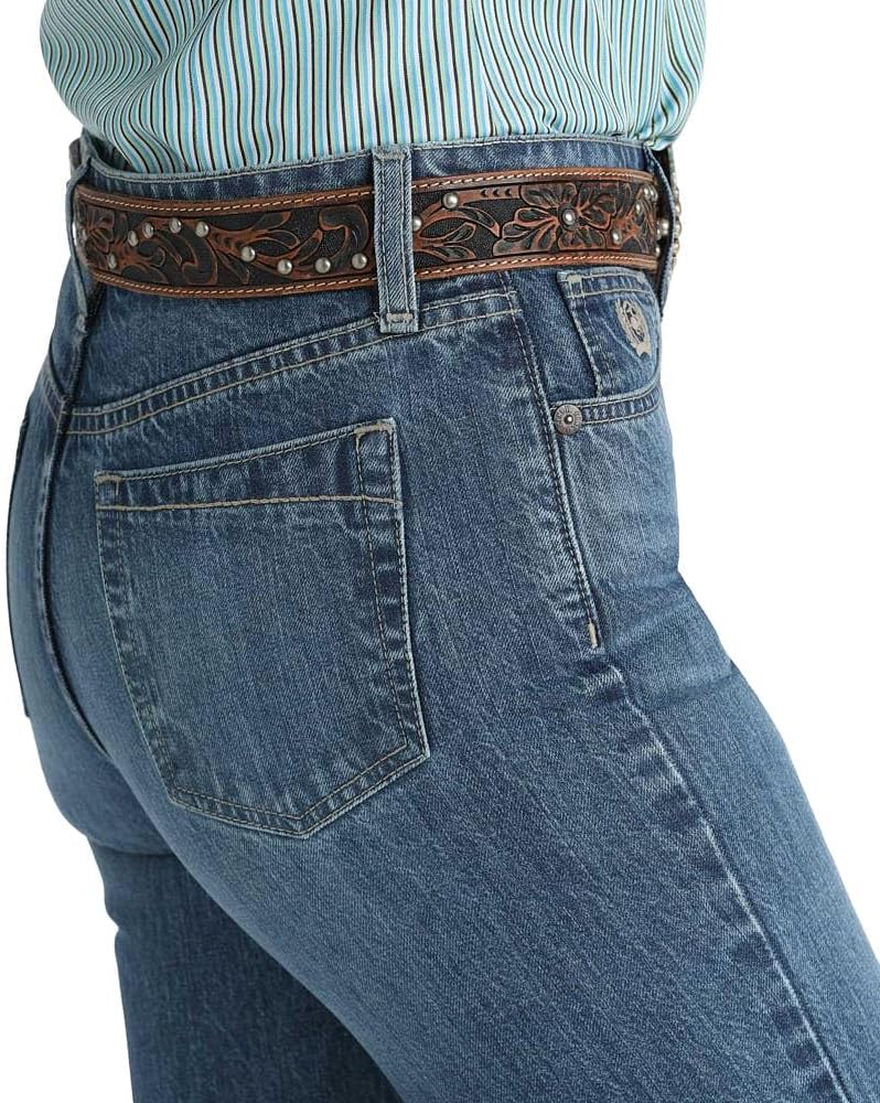 CinchHigh-rise waist for a flattering, secure fitRelaxed hip and thigh for easy movementTrouser leg opening pairs perfectly with bootsClassic five-pocket designDurable, soft denim with light fadingButton and zipper closureMJ84854001Timeless style meets modern comfort with the Women’s Tatum High Rise Trouser Jeans. Designed with a flattering high-rise waist and a comfortable trouser leg, these jeans offer a polished western look that transitions seamlessly from saddle to street. The classic medium wash denim and minimal pocket detailing make them perfect for pairing with your favorite boots, blouses, or graphic tees. Whether you’re working hard on the ranch or heading out for a night in town, these jeans deliver the ideal mix of fit, function, and fashion.