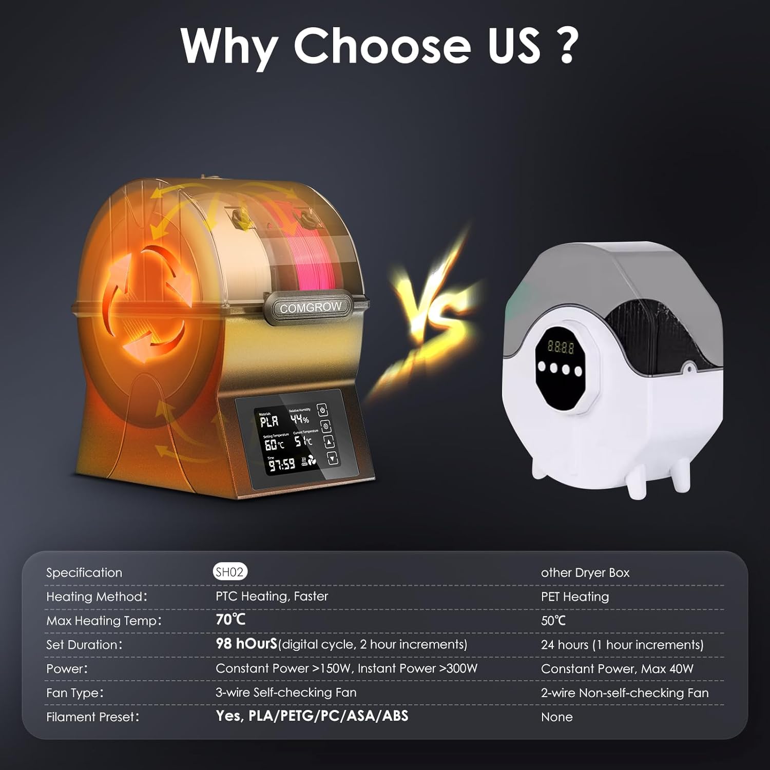 Comgrow SH02 Filament Dryer Box & Creality Hyper 3D Printer PLA Red Filament Bundle