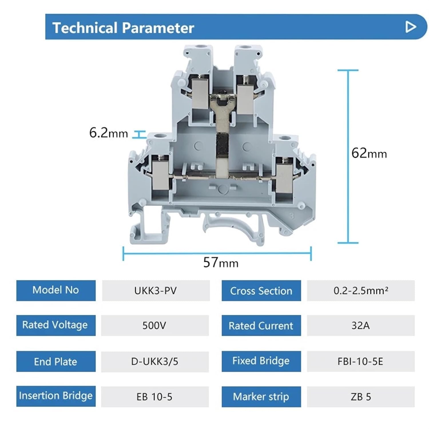 Wire TerminalsDin Rail Terminal Block Screw Connection Electrical Double Levels UKK3-PV Wire Conductors 10pcs