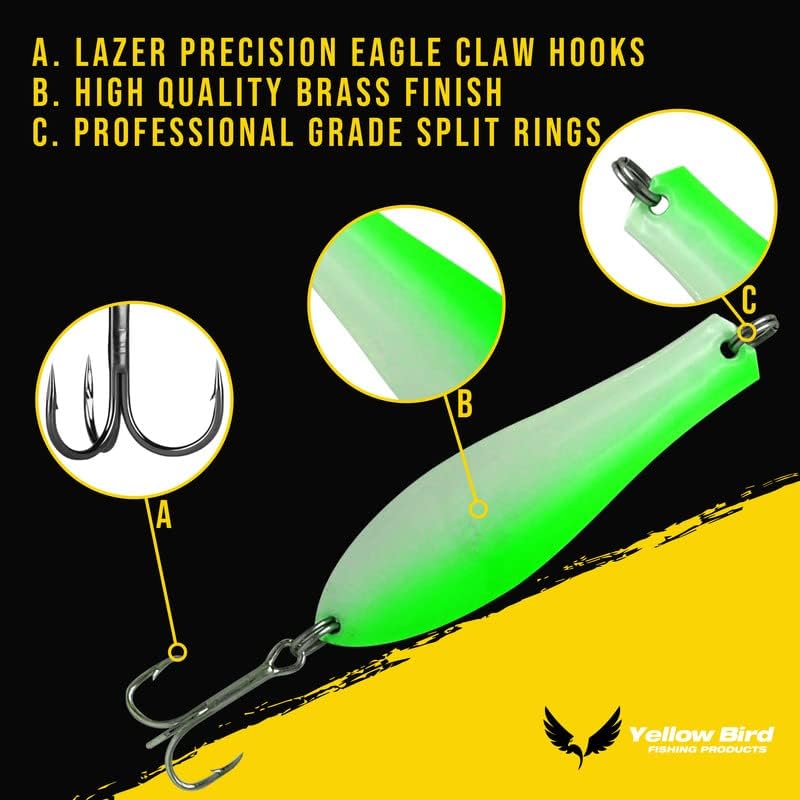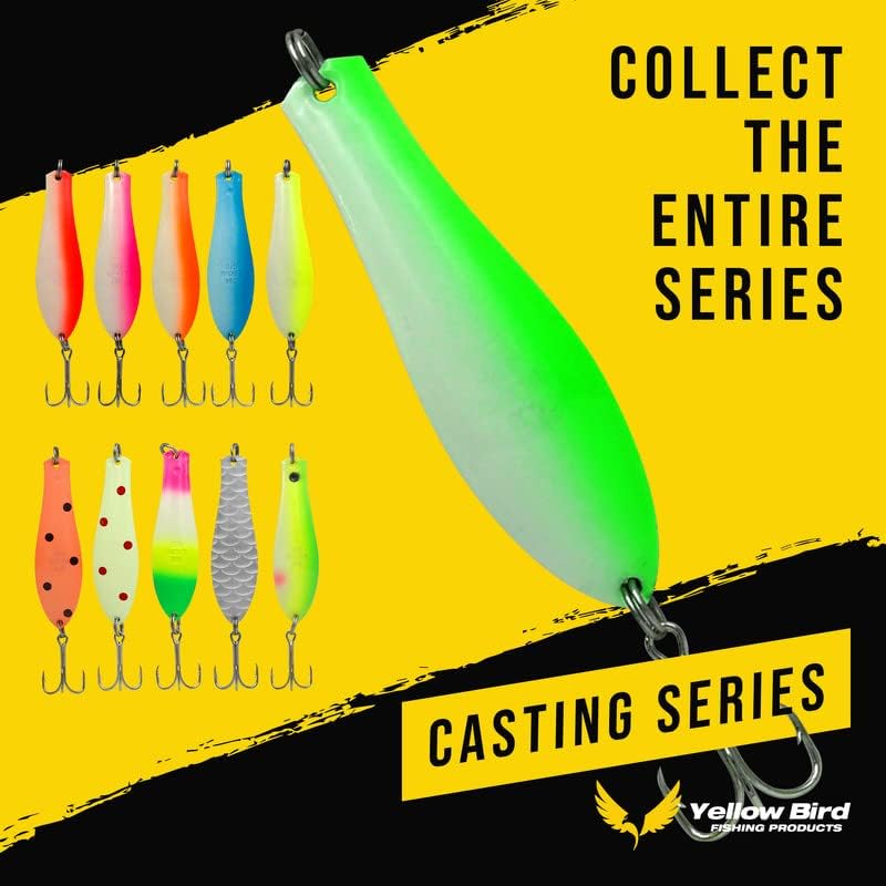 Doctor Spoons Casting Series - Cast 2X Longer - Trolling, Casting, Jigging - Fishing Lures for Walleye, Pike, Striper, Bass, Northern, Rainbow, Trout, Salmon - Eagle Claw Hooks - Yellow Bird 3 Pack