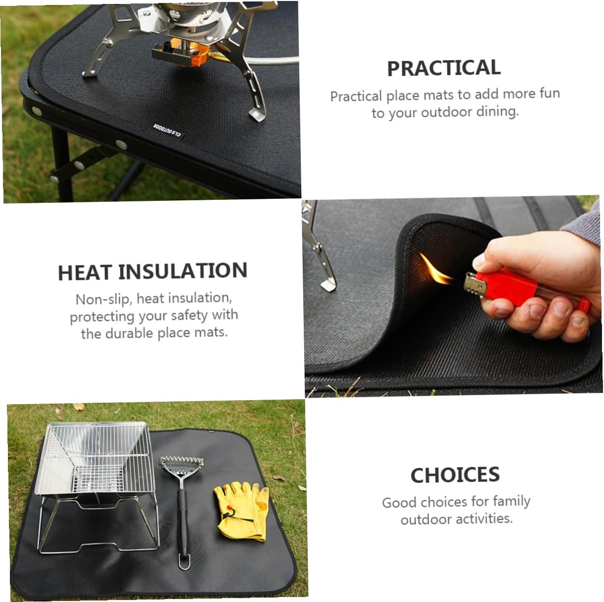 Package List 1 x fireproof mat Features - Color: Black Fireproof Mat - Material: Silicone coated glass fiber cloth Blanket -Product Info:Fireproof cloth heat insulation pad - Size: About 80.00X75.00X0.30cm/31.44X29.48X0.12inch Camping Insulation Pad - for family outdoor activities. to dress up a place setting and provides security for outdoor barbecue BBQ Fireproof Blanket. - Foldable and lightweight, it will not occupy much space and easy to carry Heat-proof Mat. - for the kitchen, fireplace, grill, car, camping and so on Fire Resistance Mat. - It is easy to clean and portable for traveling and camping Barbecue Insulation Pad. - Adopting material, which is lightweight and durable Fire Resistance Cloth.Goods DescriptionBlanket So, come and .Insulation Blanket Are you looking for a fireproof mat for outdoor use? Are you in search of a sturdy, trustworthy fireproof mat for picnic or campping use? , ! Our fireproof mat, made of material, must meet your needs