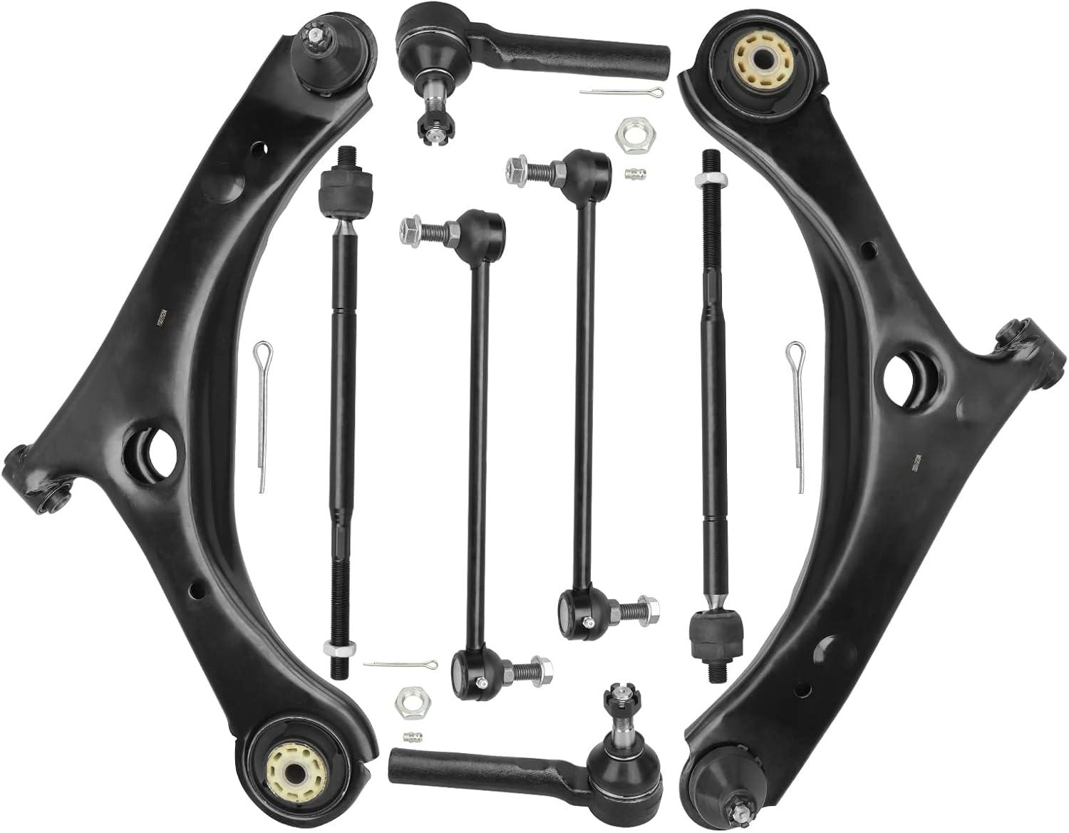 Kit Includes:1x Front Lower Passenger Side Control Arm Assembly - MS2510021x Front Lower Driver Side Control Arm Assembly - MS2510012x Front Sway Bar End Link - K72582x Front Outer Tie Rod End Link - ES8004032x Front Inner Tie Rod End Link - ES80646Compatible with:2008-2017 Dodge Grand Caravan2008-2016 Chrysler Town & Country