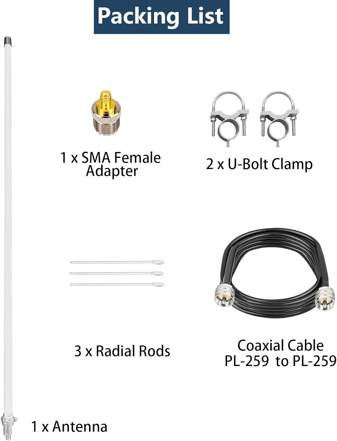 Elevate Your GMRS Communications with the High-Performance GMRS Base Antenna Experience unparalleled clarity and range in your General Mobile Radio Service (GMRS) communications with our professional-grade GMRS Base Antenna. Specifically engineered for the 462-467MHz frequency range, this antenna delivers exceptional performance for all your GMRS applications. Key Features: Optimized for GMRS Frequency: Precisely tuned for the 462-467MHz band, ensuring maximum efficiency and FCC compliance for GMRS operations High-Gain Performance: 7.5 dBi gain significantly boosts signal strength and extends communication range Superior Signal Integrity: Ultra-low VSWR (<1.3) minimizes signal loss and maximizes power transfer Professional Ground Plane Design: Low elevation omnidirectional radiation pattern ensures excellent coverage even on shorter masts All-Weather Durability: Military-grade fiberglass construction withstands harsh conditions including heavy rain, strong winds, and extreme temperatures Universal Compatibility: Works seamlessly with GMRS base stations, repeaters, and mobile radios Technical Specifications: Frequency Range: 462-467MHz VSWR: <1.3 Impedance: 50Ω Gain: 7.5 dBi Radiation Pattern: Omnidirectional Horizontal Beam Width: 360º Vertical Beam Width: 60º Polarization: Vertical Maximum Power Input: 150W Lightning Protection: Direct Ground Connector: SO239 UHF Female Complete Ready-to-Use Package Includes: Antenna with a UHF female connector, Mounting hardware, and all necessary components for quick installation. The antenna comes with a 32ft low-loss coaxial cable with PL-259 connectors, making it ideal for both base station and mobile setups. Ideal For: GMRS repeater installations Base station enhancements Mobile communications Camping and outdoor activities Community emergency communications Remote area communications Built to last and designed to perform, this robust antenna ensures reliable communication in any environment. Whether you're in remote wilderness or urban settings, our GMRS Base Antenna keeps you connected with crystal-clear audio and stable signals. Upgrade your GMRS system today and experience the difference that professional-grade antenna technology makes in your communications reliability and range.