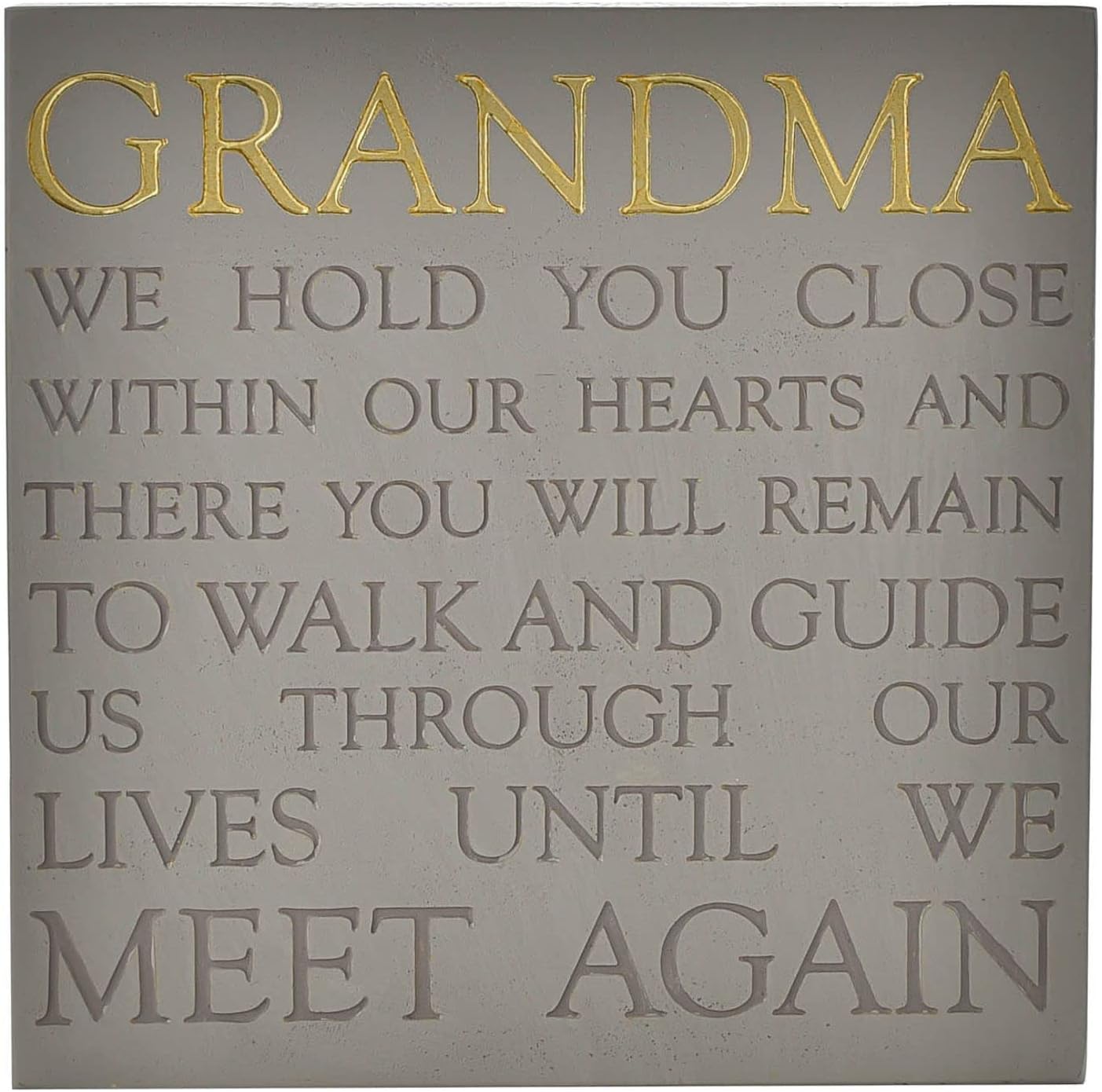 Square Memorial Plaque by Thoughts of You Grey Plaque with wording Freestanding Size approx.: 19.5cm x 19.5cm Reads: Grandma We hold you close within our hearts and there you will remain, to walk and guide us through our lives until we meet again