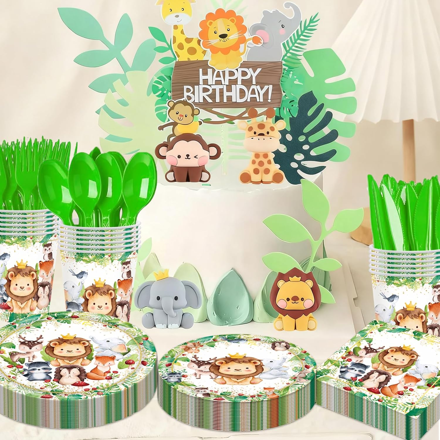 Jungle Animals Party Decorations - 350 Pcs Safari Animal Baby Shower Plates and Napkins, Wild Animals Theme Disposable Tableware Set for Baby Shower Zoo Birthday Party Supplies Favors, Serves 50