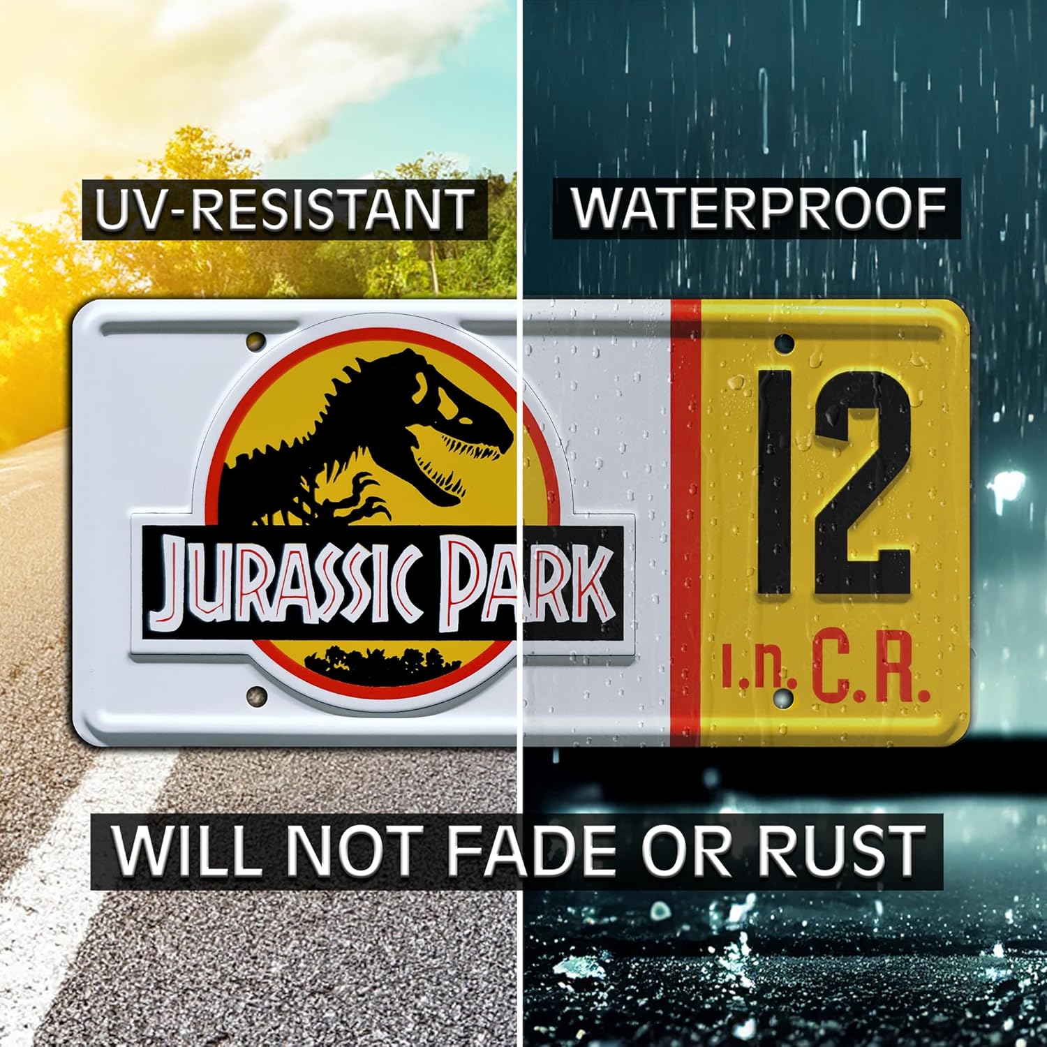 The Jurassic #12 License Plate is produced as seen on Dennis Nedry’s 1993 Wrangler Sahara in the first movie of the trilogy. This listing is for TWO Jurassic #12 license plates. Disclaimer: This is a decorative vanity plate intended only for display, collectible, and novelty purposes. It is not a registered license plate. This plate should not be used as a replacement for a government-issued license plate on any motor vehicle. Misuse of this product may violate local laws and regulations.