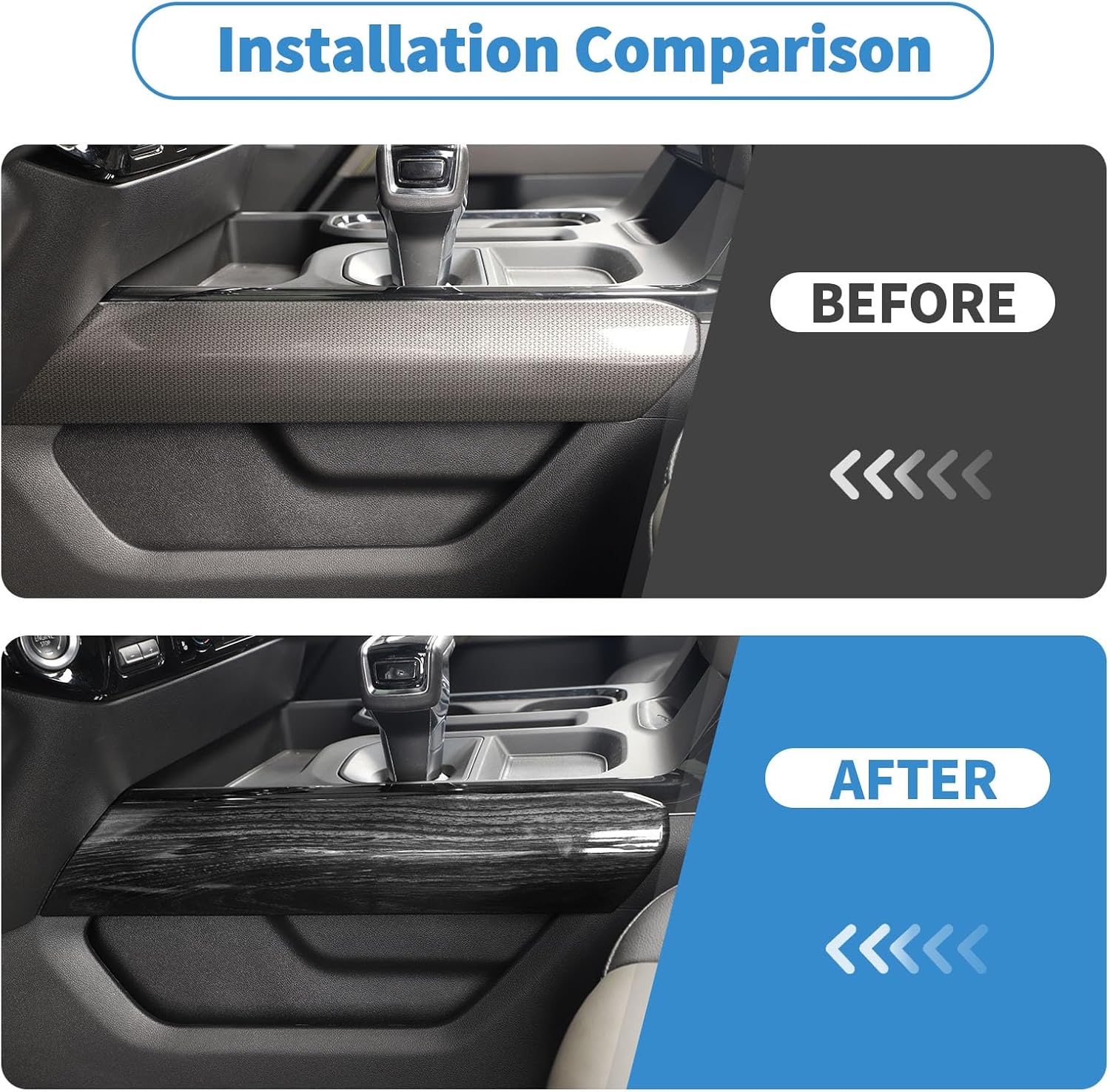 Perfect fitment: Compatible with 2022 2023 2024 Chevrolet Silverado & GMC Sierra 1500 Material: ABS Package includes: 2Pcs Console Side Trim Installation instructions: 1. Please clean the installation place and keep it dry and no dust on. 2. Tear off the self-adhesive on the back. 3. If the temperature is below 15 degrees, you may need to Heating Product Tape.
