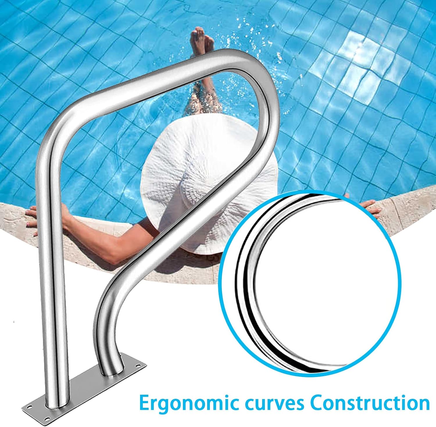 This all stainless steel handrail is ideally suited to any size swimming pool. The rails have a small footprint and are designed to take up minimal deck space, while ensuring safe and solid support for access to the water. The stainless steel design ensures that your handrails will not rust or stain for years to come. Product features ---High quality 304 stainless steel material for durability. --Humane curves, based on hydrodynamic principles, nicely decorate your pool. --Easy to grip, perfect firm fit, helps to get in and out of the pool and provides a sense of security. --Simple bolt-on installation, easy to install. Product Specifications. Product Name: 304 Stainless Steel Pool Rail, Pool Railing Product Colour: Silver Product Material: 304 Stainless Steel Weight capacity: 375 lbs / 170 kg Product Size: 31.8 "L x 22.8 "H/ 81 x 58 cm Tube diameter: 1.9"/ 4.9cm Base plate size: 13.8 "L x 3.9 "W/ 24.5 x 10 cm Pre-drilled diameter: 0.4"/ 9.5 mm Product weight: 12.1 lbs/ 5.5 kg Care: When the stainless steel handrail gets dusty, it can be wiped directly with a dry cloth. Product list 1X304 Stainless Steel Pool Rail, Pool Railing 1X Installation Tool Precautions. Fixed swimming pool ladders are very easy to install. We recommend that you use a hammer drill to make holes in the concrete.