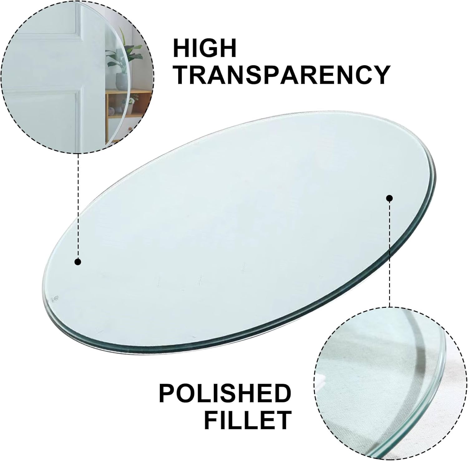 Round Glass Table Top - Clear Tempered Glass Surface Protector - Safe Beveled Edge - Clear Table Top Glass ¨C Useful for Replacement, Tabletop Protector, Patio, Dining, Coffee, DesksSpecification:1. Material: Glass2. Color: As product image shown3. Size: Multi InchFeature:0.24" inch Thick Tempered Glass: We use tempered glass material for our glass tabletop, with a thickness of 0.24 inch. It can offer greater resistance to bending and impacts. This makes it well-suited for applications that require withstanding substantial forces.Tempered Glass Features: Tempered glass is over five times stronger than regular glass, and when it breaks, it shatters into small, dull-edged granules, reducing the risk of injury. This ensures the safety of you and your family!Glass Edge Safety Design: Our glass table top features a safety-focused edge design. The edges are smoothly polished and designed to prevent accidents, ensuring both aesthetics and your safety.Free matching, personalized customization: You can choose your table legs according to your preferences. Metal, wood, vintage or futuristic styling - this glass countertop can harmoniously complement any style, creating exclusive custom furniture. Especially suitable for European users who pursue flexibility and space utilization.Important Notice: This product only includes a glass countertop (packaged separately)! The table legs, accessories, or scenes shown in the display are only schematic diagrams and need to be purchased separately. We focus on providing high-quality desktops so that you can freely match the base and create exclusive furniture.Package Included:1 Set Metal Raised Garden Bed with Trellis