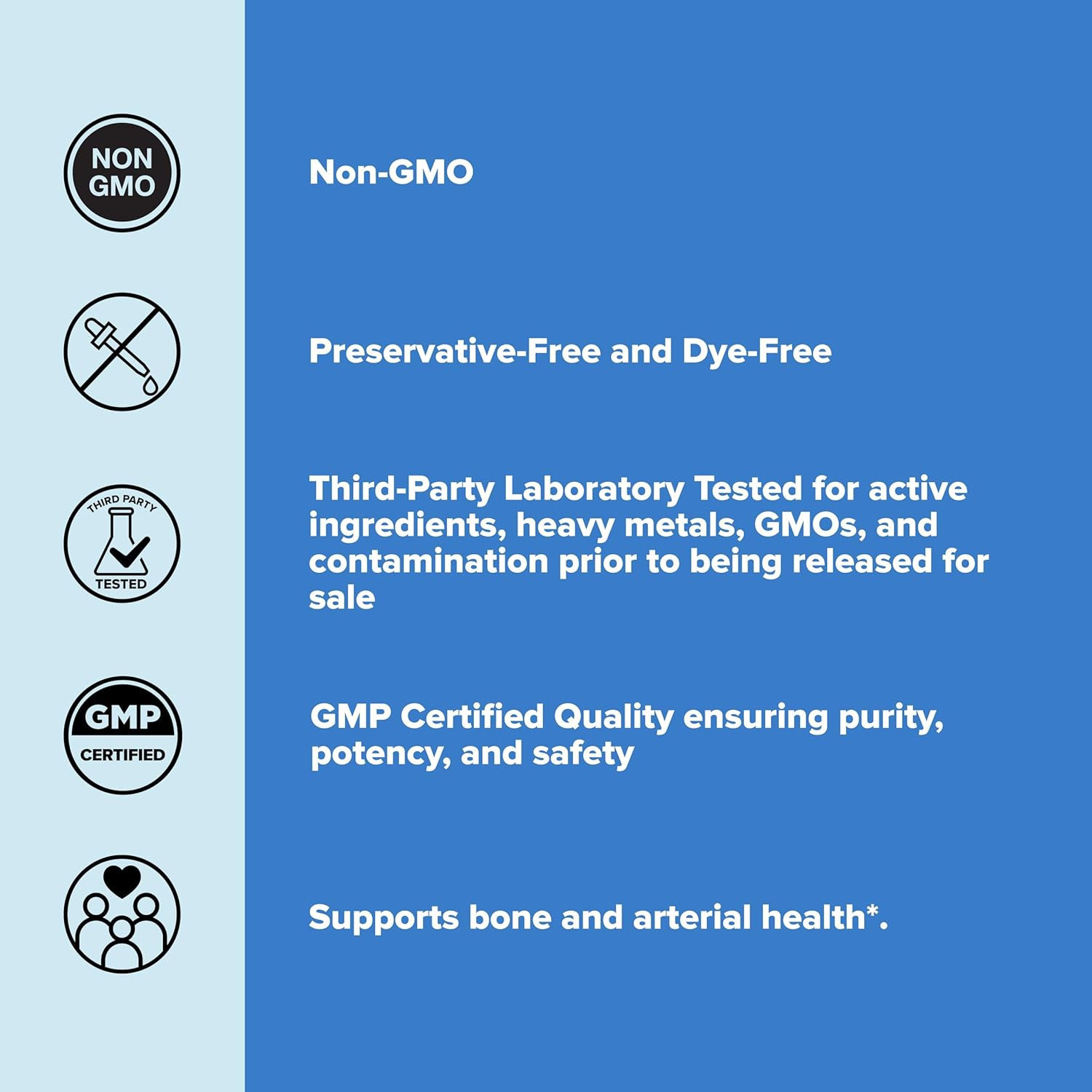 | Primary Supplement Type | Lactose, Vitamin K-2 (as Menaquinone-7) (MK-7), Stevia and Gum Arabic |