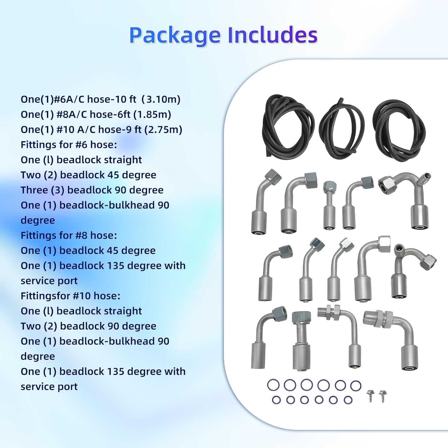 Universal SLD30-27 AC Hose Kit with Fittings & O-Rings for GM Vehicles Compatible with Buick Chevrolet Cadillac GMC - Custom Length Hoses for Air Conditioning Repair
