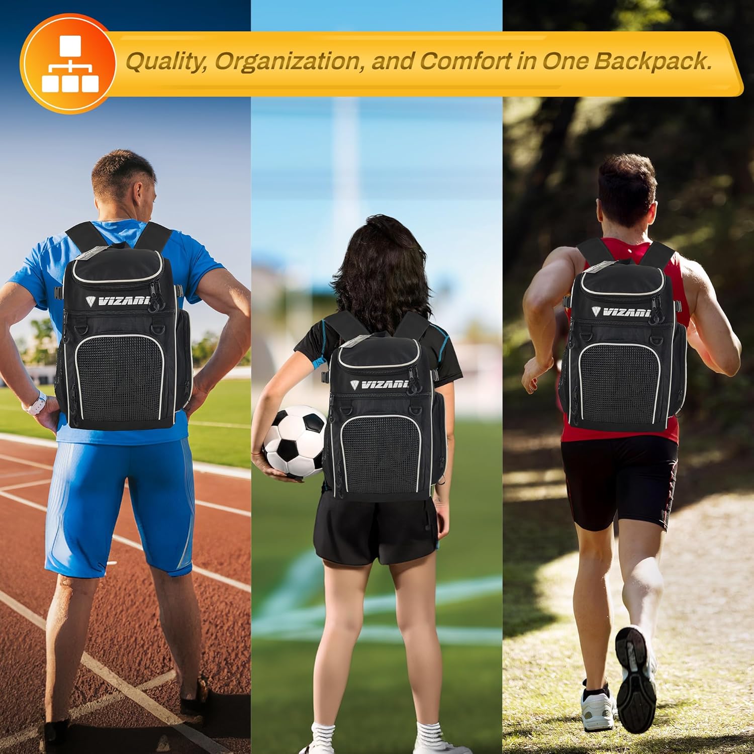 The Cambria Soccer Backpack isn't just for soccer; it's a versatile companion for various sports, including Volleyball and Basketball. Suitable for both kids and adults, this backpack offers a spectrum of colors to match your style. Its spacious design accommodates all your gear, even holding a ball securely.