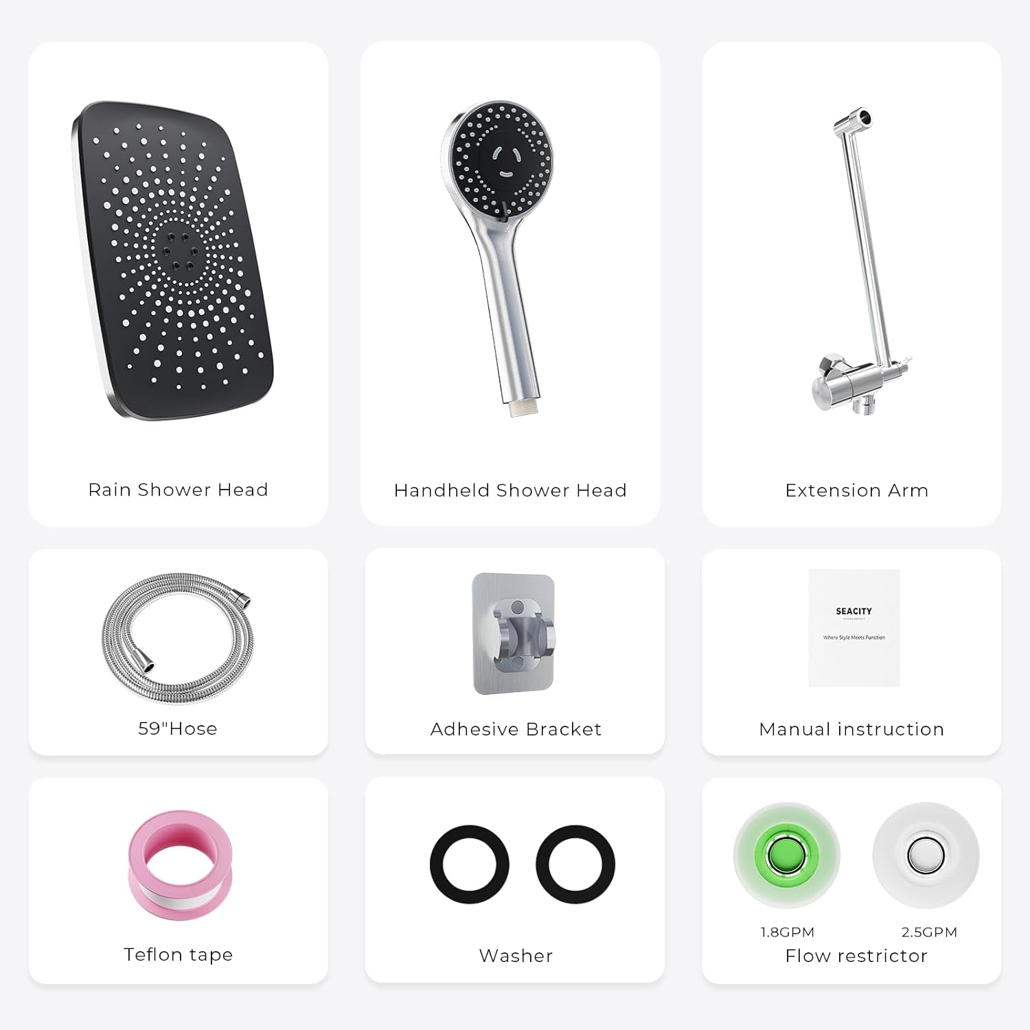 | Included Components | handheld shower sprayer, hose, shower head |
