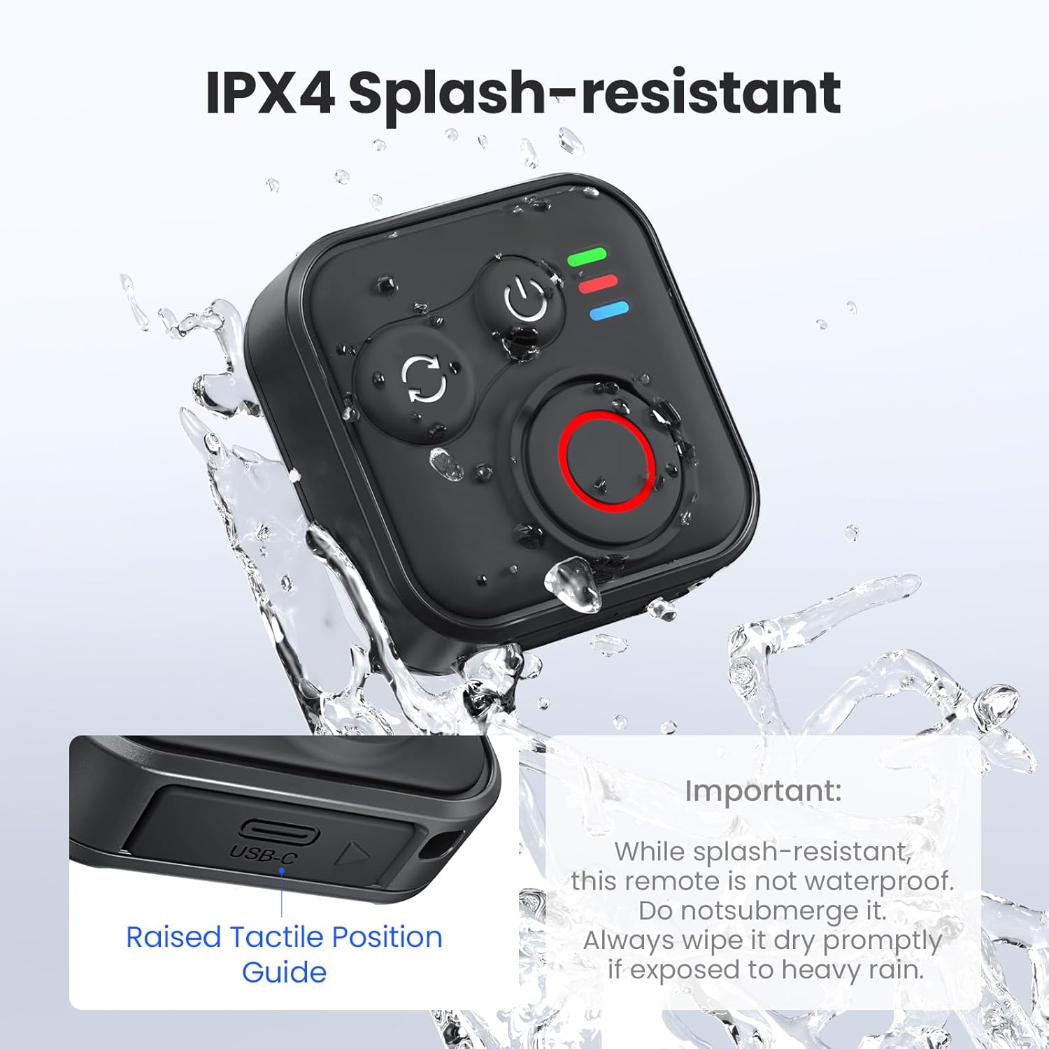 This Bluetooth remote is designed for compatible action cameras, offering wireless control and including a charging cable, a long wrist strap, and a short wrist strap for versatile use. Why Choose It? ① Extended Wireless Control: Allows you to operate your camera's key functions (like start/stop recording, take photos) from a distance via Bluetooth. ② Wide Camera Compatibility: Designed to work with various action camera models, providing a versatile control solution for different devices. ③ Dual Wrist Strap Options: Includes both a long and a short wrist strap, offering flexibility for mounting on your wrist, arm, or equipment. ④ Convenient On-the-Go Charging: Comes with a charging cable to keep the remote powered and ready for your adventures. ⑤ Enhanced Shooting Flexibility: Enables easier camera control during activities like vlogging, sports, or self-recording where the camera is mounted out of reach. ⑥ Compact & Portable Design: The remote is small and lightweight, making it easy to carry and use during various activities. Who It’s For? Action camera users who need convenient wireless control of their camera during activities like cycling, skiing, or hiking. Vloggers and content creators looking for an easier way to start/stop recording or take photos when the camera is mounted on a tripod or helmet. Travelers and outdoor enthusiasts wanting a remote to capture group shots or self-recordings without touching the camera. Anyone seeking a flexible remote control solution with multiple wearing options for their compatible action camera.