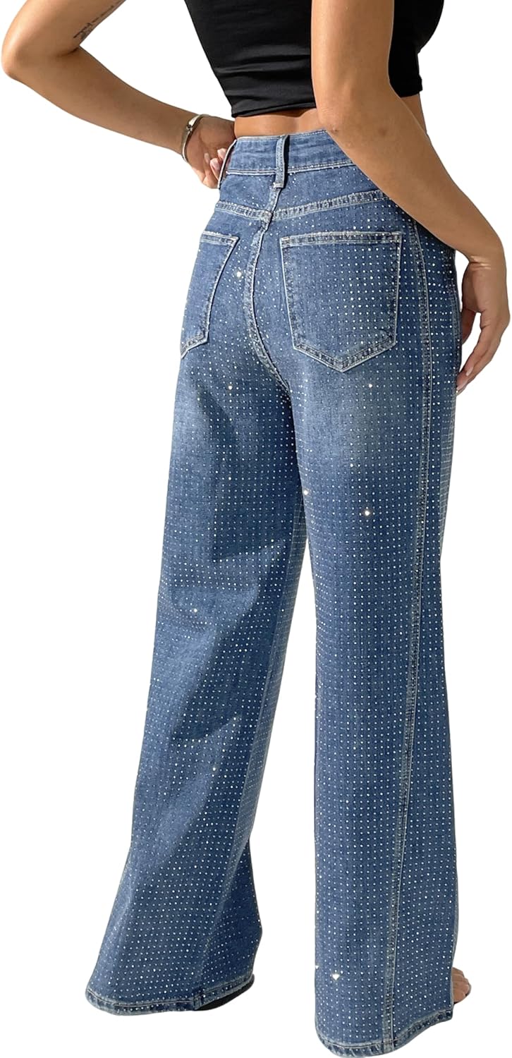 Women's Sparkly Country Concert Western Cowgirl Outfit Trendy High Waisted Jean Y2K Pants